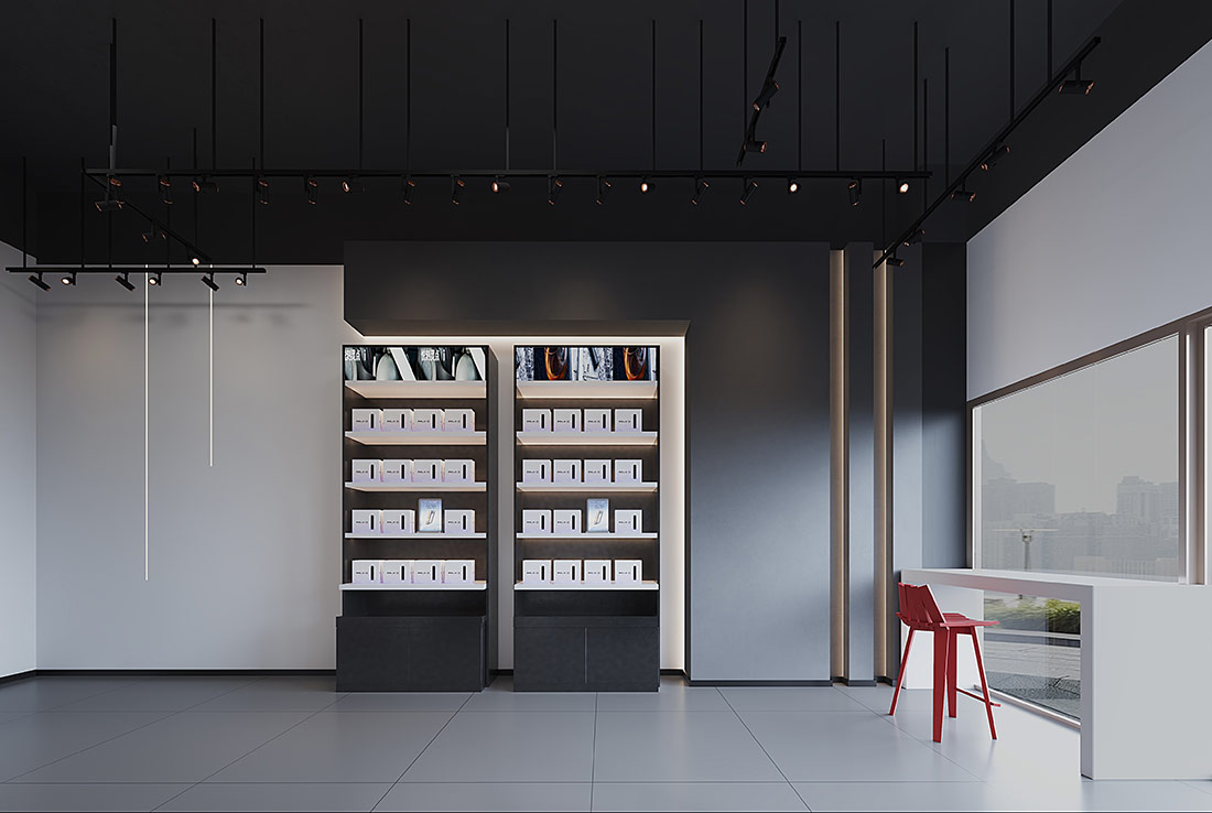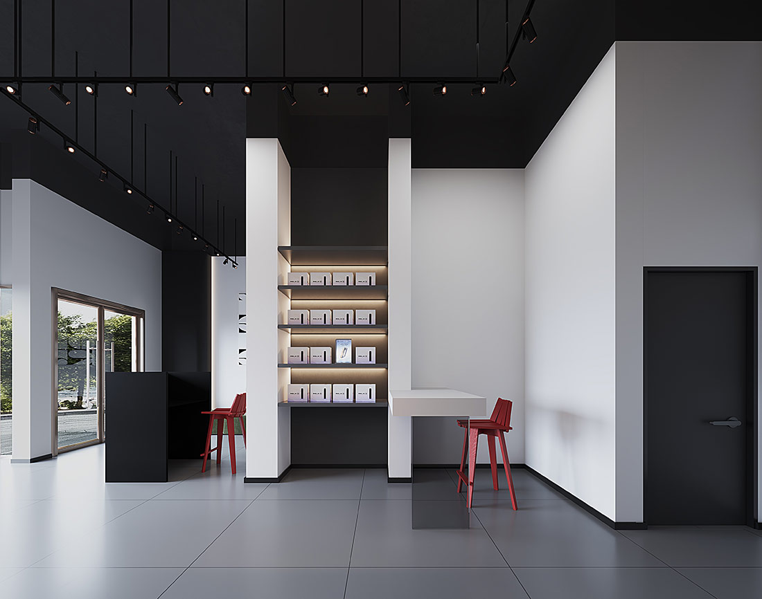小型商鋪裝修效果追求精致與實用并存??臻g雖有限,但通過巧妙布局與色彩搭配,營造出寬敞明亮的購物環(huán)境。整體顏色使用白色和黑色相互混搭。墻面與地面選用耐磨易清潔材料,保持店鋪整潔。商品展示區(qū)設(shè)計醒目,利用燈光與陳列技巧吸引顧客目光。整體裝修風格與商品定位相符,營造出舒適愉悅的購物氛圍,提升顧客體驗與店鋪形象。