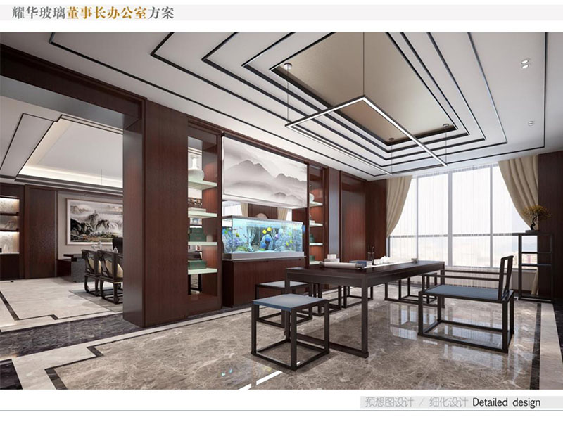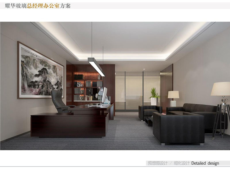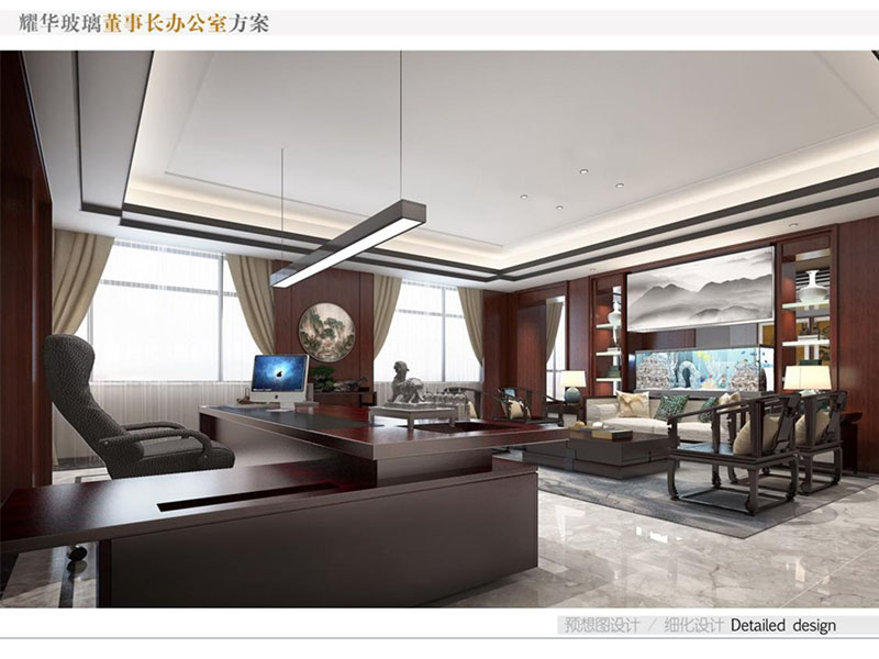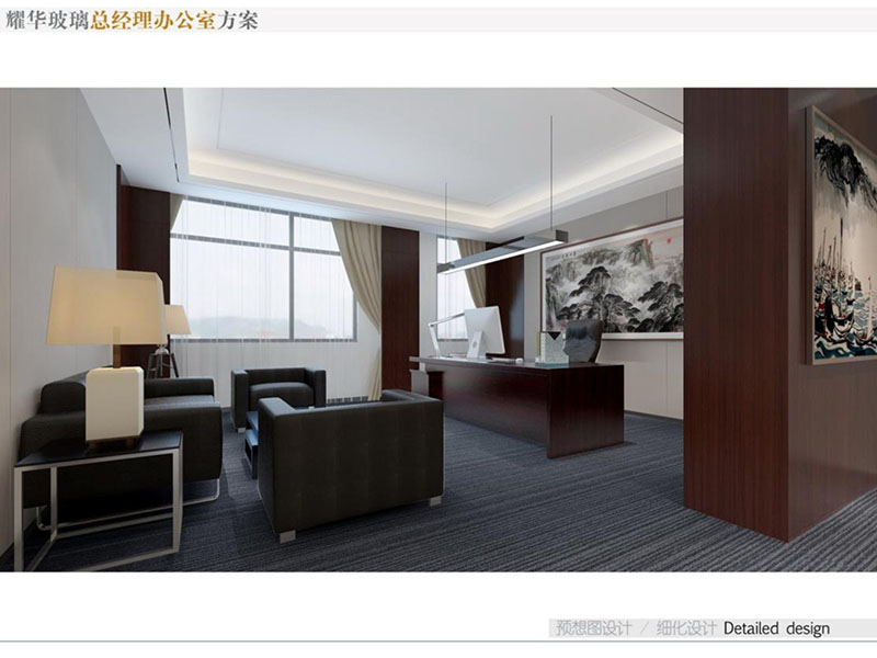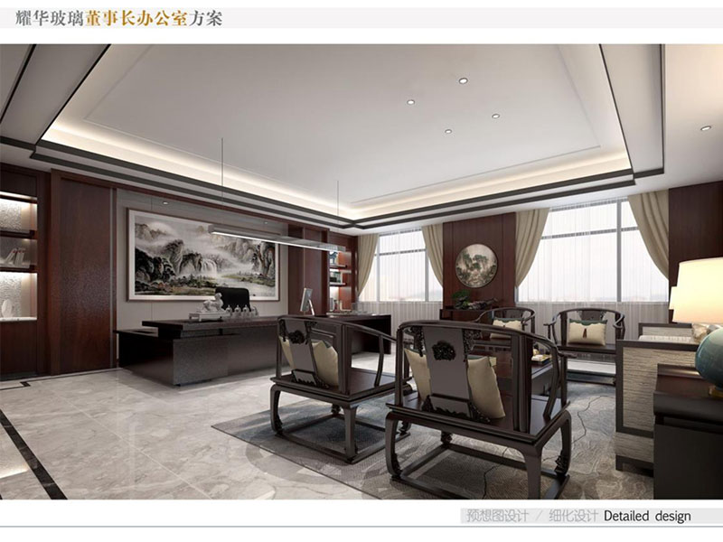耀華玻璃董事長辦公室裝修效果圖彰顯出了企業(yè)的高端形象。董事長辦公室設(shè)計采用了中式風格,運用高質(zhì)量的木材、優(yōu)質(zhì)玻璃等,給辦公室營造出沉穩(wěn)的氣氛??臻g布局合理,既有寬敞的辦公區(qū),也有舒適的接待室和休息區(qū)。同時,辦公室內(nèi)也會融入耀華玻璃的特色元素,如玻璃藝術(shù)品或公司標志,體現(xiàn)企業(yè)品牌和創(chuàng)新精神。