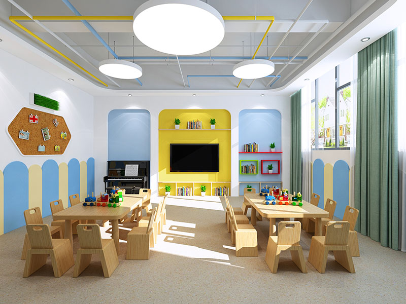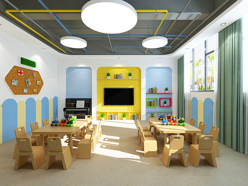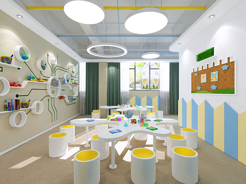 濟(jì)南早教中心裝修效果展示,能夠激發(fā)孩子們的對(duì)于事物的興趣和加強(qiáng)探索欲望。早教中心往往采用明亮色調(diào)來(lái)搭配,比如紅色、綠色、亮橙等顏色混合搭配,營(yíng)造出活潑而不失溫馨的氛圍。此外,早教中心的裝修還會(huì)和教育元素相融合,早教中心還會(huì)選用環(huán)保、無(wú)毒的裝修材料,確保孩子們的健康安全。