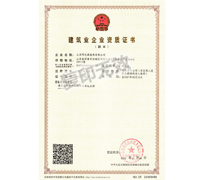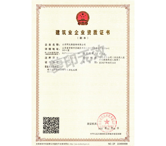 山東阿達(dá)森裝飾有限公司是經(jīng)濟(jì)南市工商行政管理局正式批準(zhǔn)備案的正規(guī)裝飾企業(yè)。公司集辦公裝修設(shè)計(jì)、工程施工、建材配置、辦公家具配置于一體,涉及領(lǐng)域包括濟(jì)南店面裝修設(shè)計(jì)、寫字樓裝修、辦公室裝修、連鎖酒店賓館裝飾裝修、主題餐廳裝修、酒吧KTV裝修、家庭裝修裝潢等。
